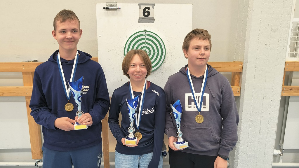 | Nuorten sarjassa hallinnut mestari NoTik sai nyt tyytyä hopeaan, kun HuVe tuli ja nappasi selvän voiton tuloksella 668. Pronssimitalit sai JaTi:n joukkue, jonka Jiri Hietikko teki parhaan henkilökohtaisen tuloksen 304. Tulostaso on laskenut merkittävästi, sillä kisaennätys on 1114 JaTi:n nimissä vuodelta 2013. Ennen NoTik:n voittoa monta mestaruutta haali SST ja tätä ennen vielä useammasti JaTi. |