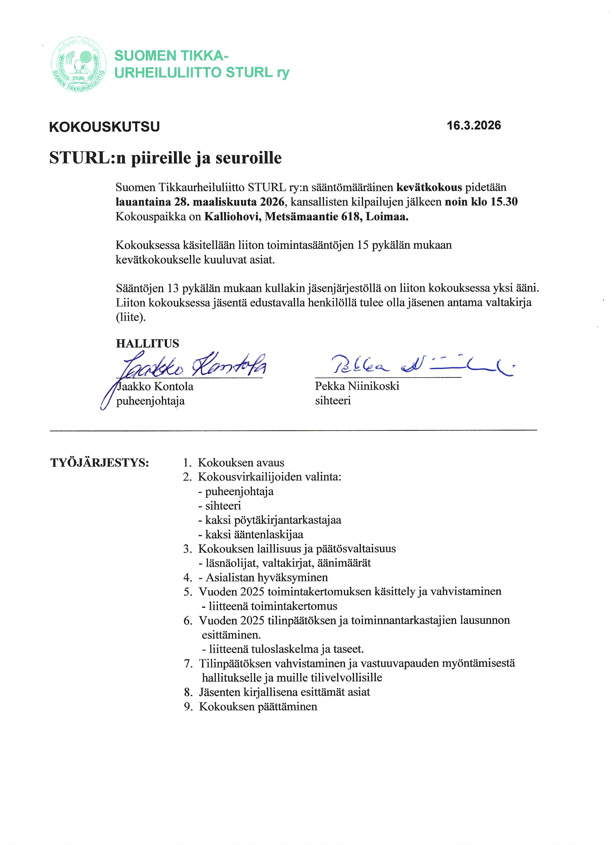 STURL:n KILPAILUT JA KOKOUKSET 2026